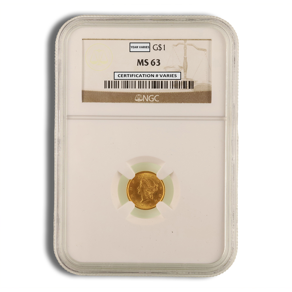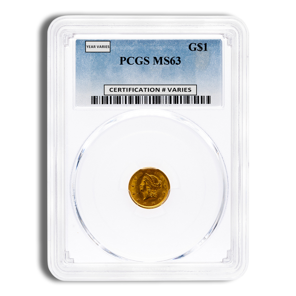 Within the category of $1 gold coins, there is a variety of designs and mint features for collectors and investors to consider. The first series, known as Liberty Head or Type 1, was minted from 1849 to 1854. These coins are recognized by their small size, measuring just 13 millimeters in diameter, and their elegant Liberty head design.